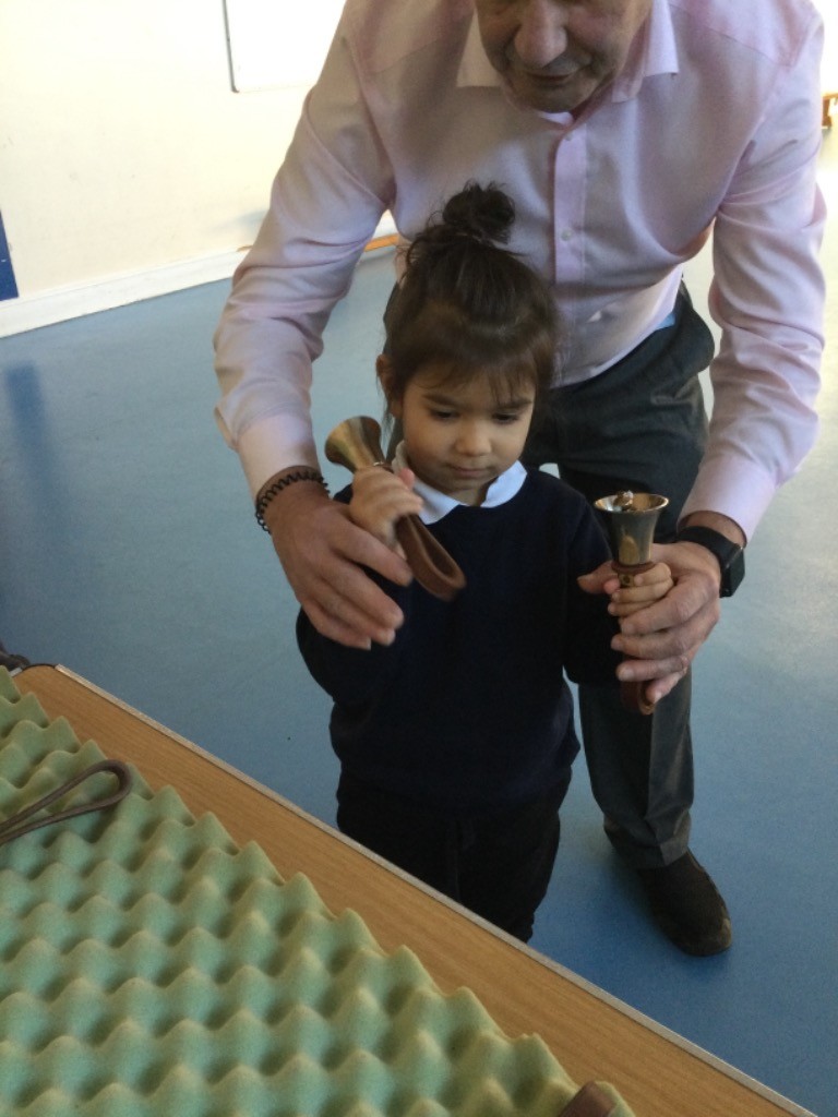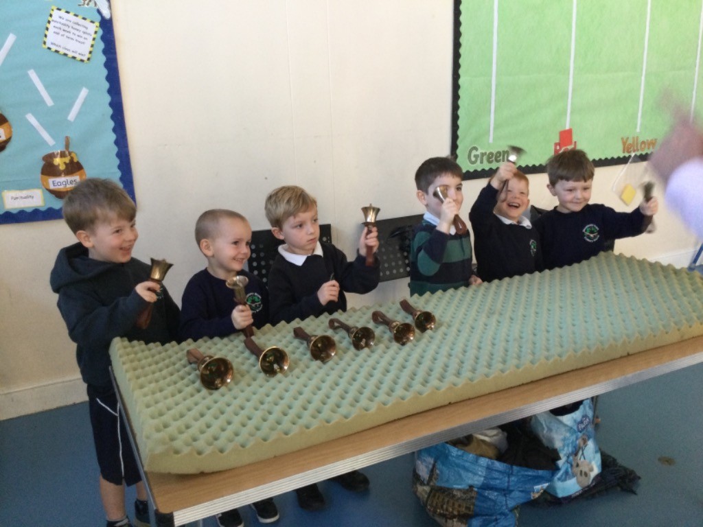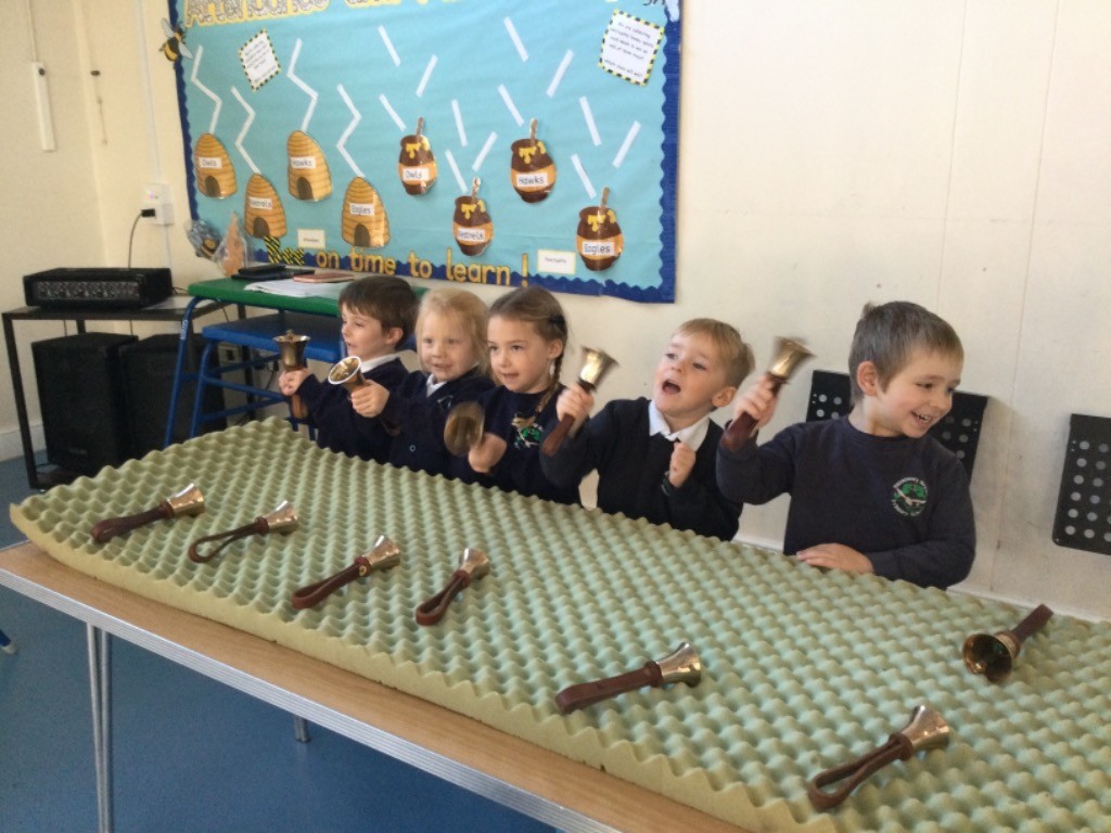 This week was 'Antibullying Week' and the theme was 'Make a Noise About Bullying'. After our initial assembly about bullying and why it is so important not to stay quiet about bullying we 'made a noise' using bells this week. We had two sessions at the beginning of the week with our fantastic visiting bell ringing teacher Mr Joiner. On Monday he taught us how to make a sound with the bells and Tuesday we used our new bell ringing skills to play a tune....we wonder if you can guess what it was?! On Wednesday, key stage 2 children went to the church to explore the bell ringing from the large church bells so Owls went outside to listen carefully to them being rung. We also looked at kindness and what that looks like and how that feels. The children shared some fantastic ideas as to how to be kind and using painty hands, we made a kindness tree to stand proud in our classroom. Great job Owls!