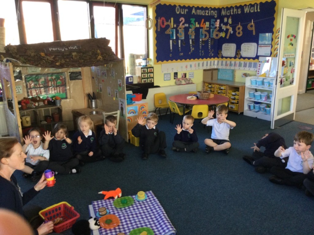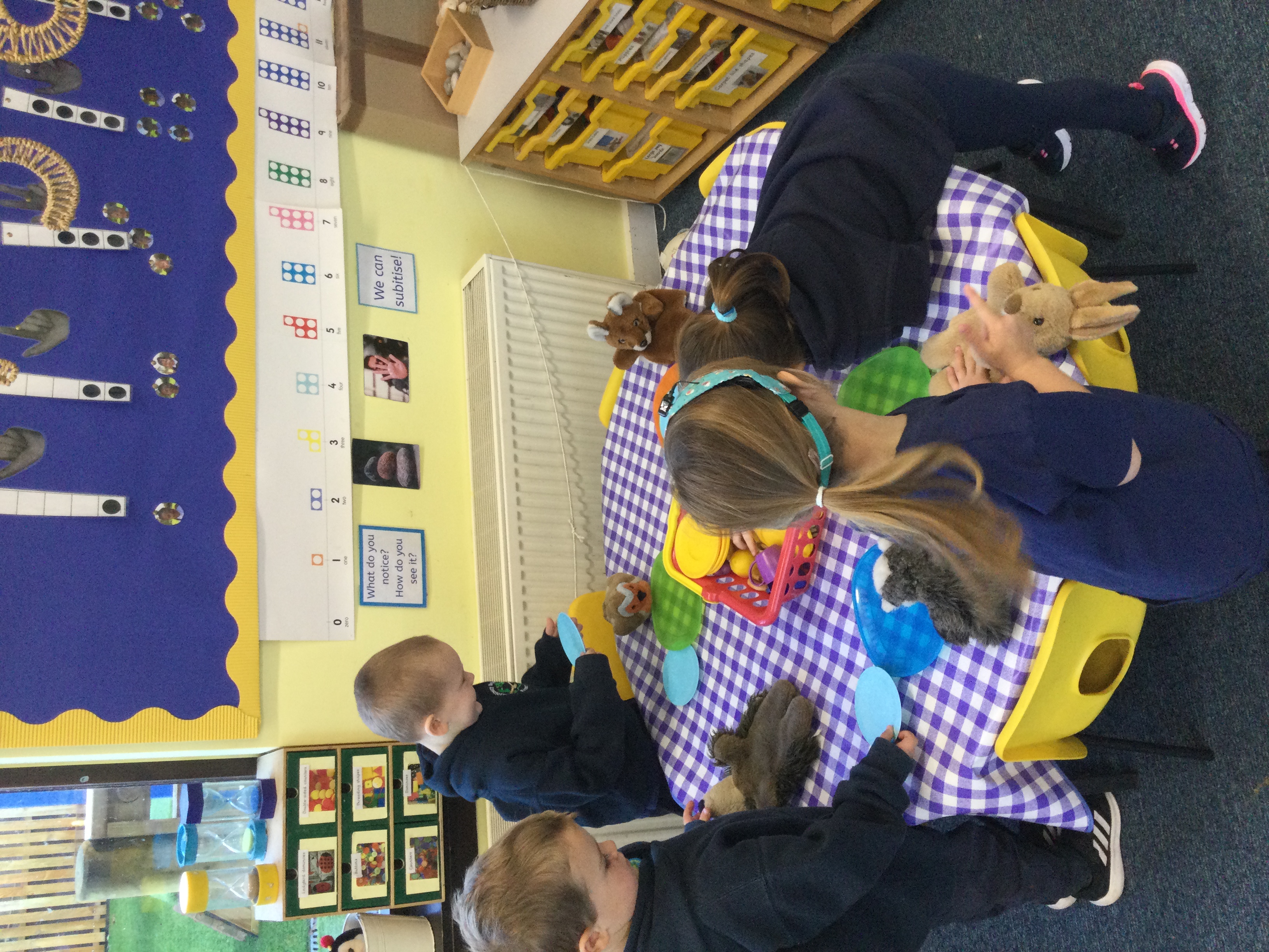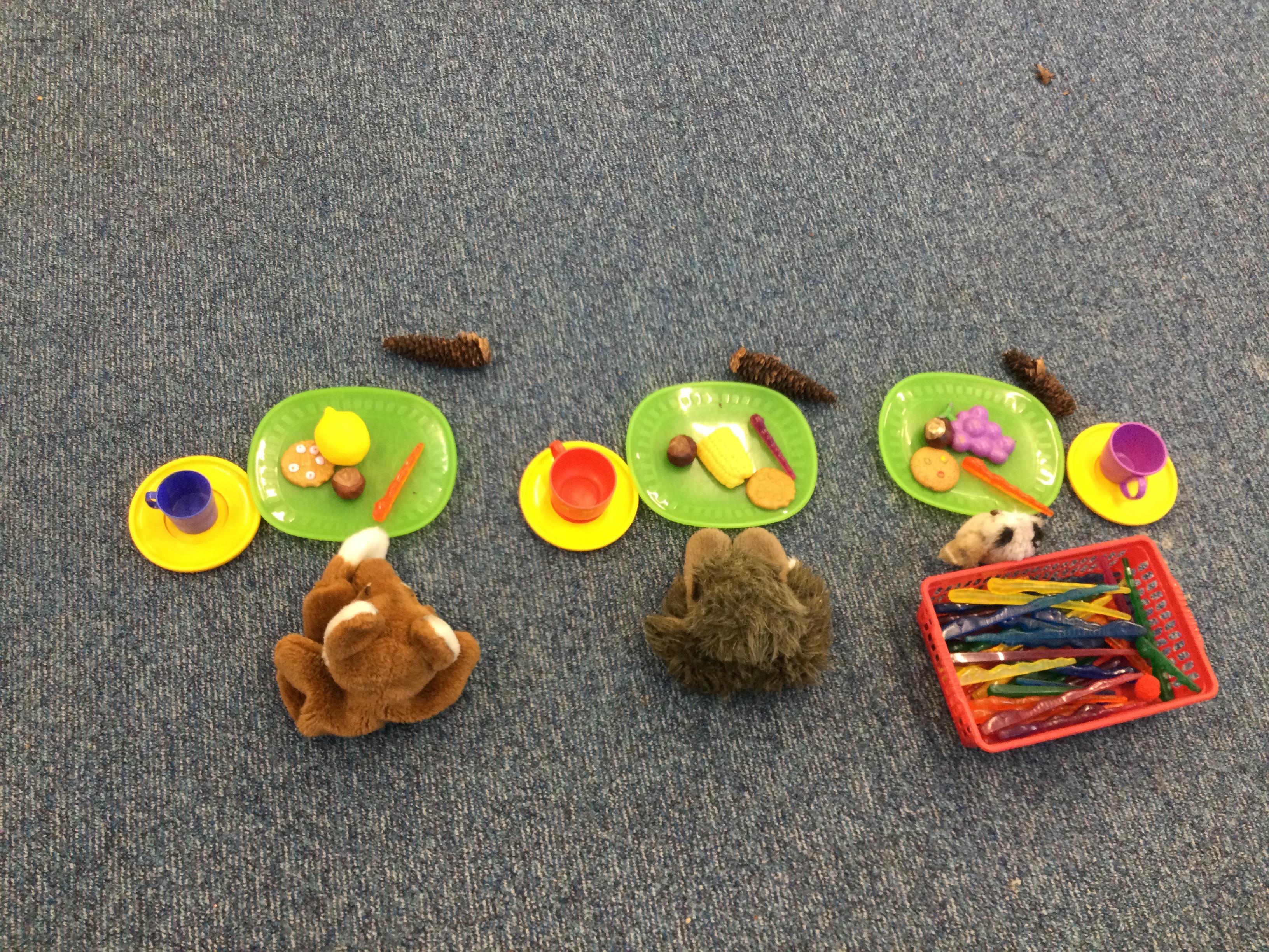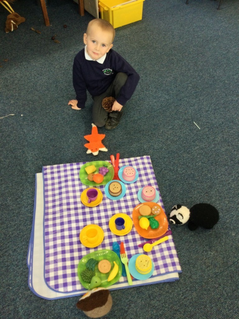 In maths this week we have been comparing quantities and learning the associated mathematical language: 'more than', 'fewer than', 'equal to'. The children have been setting a picnic for Percy's animals and comparing the quantity of picnic items with the amount of animals. We have also been playing lots of games involving comparing quantities - great work Owls!