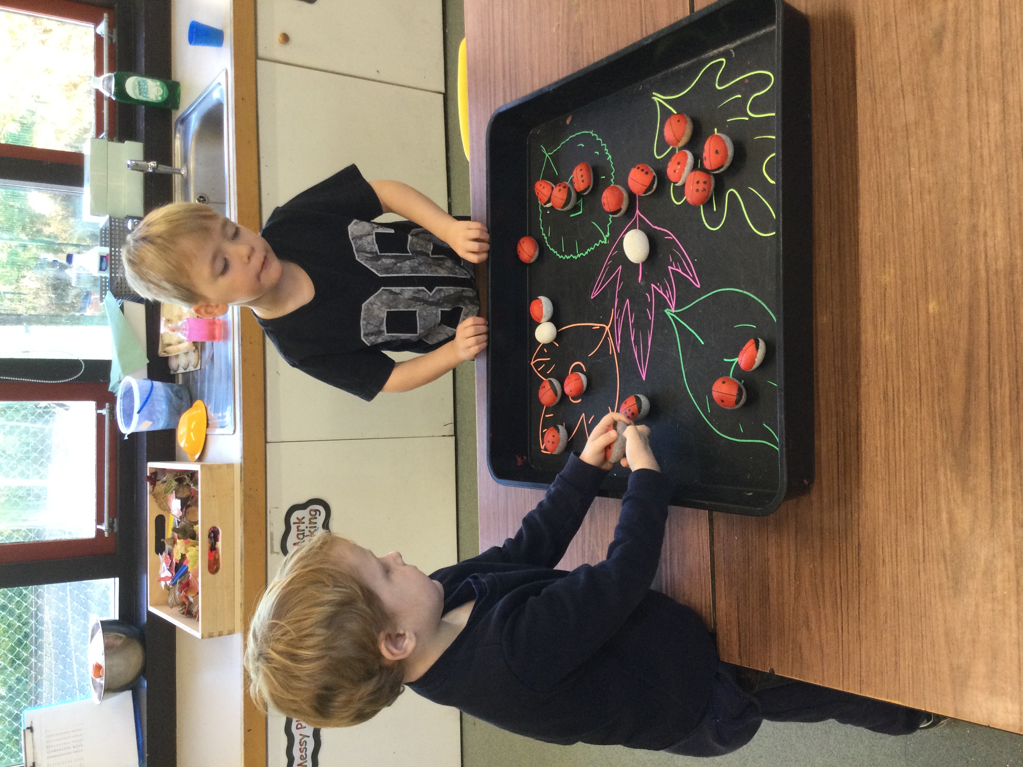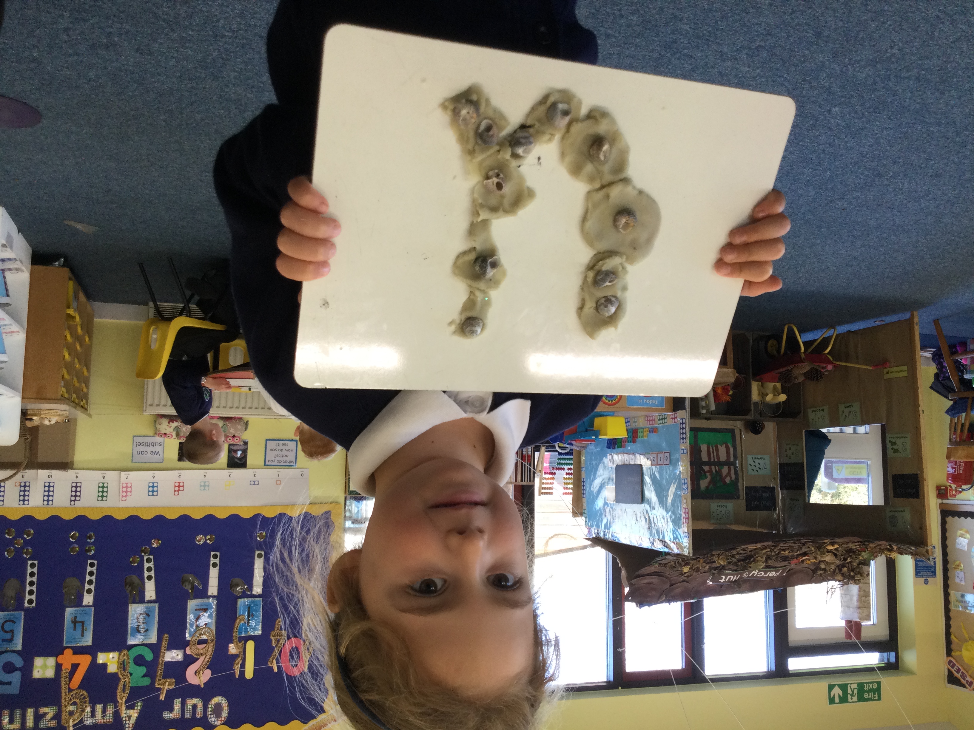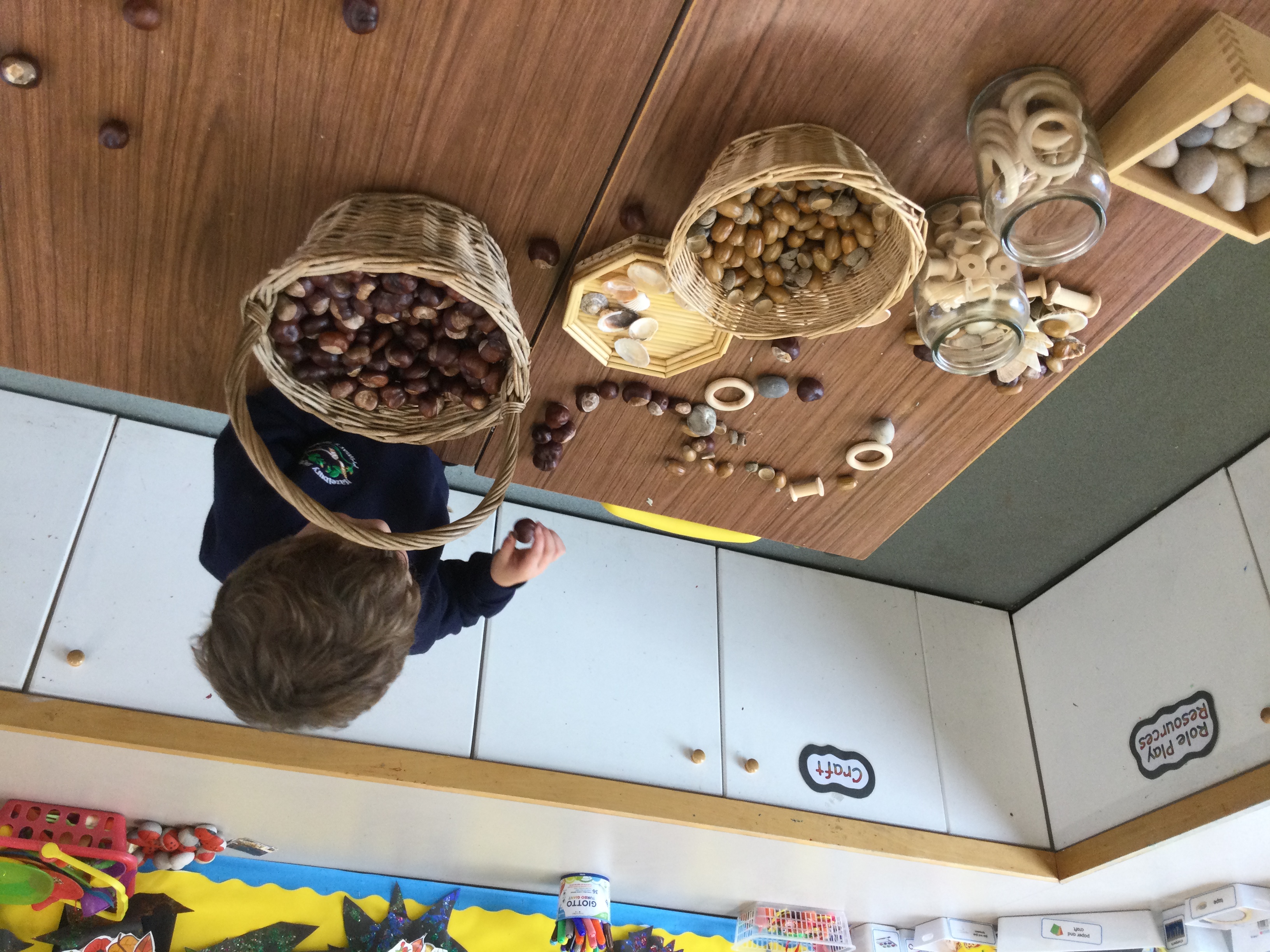Finally, we celebrated 'Children in Need,' by having a range of activities that were spotty. The children enjoyed developing their gross motor skills by hopping and jumping from spot to spot, colouring Pudsey pictures to develop fine motor control, making spotty shapes using the natural objects and making spotty pictures using the tap tap.