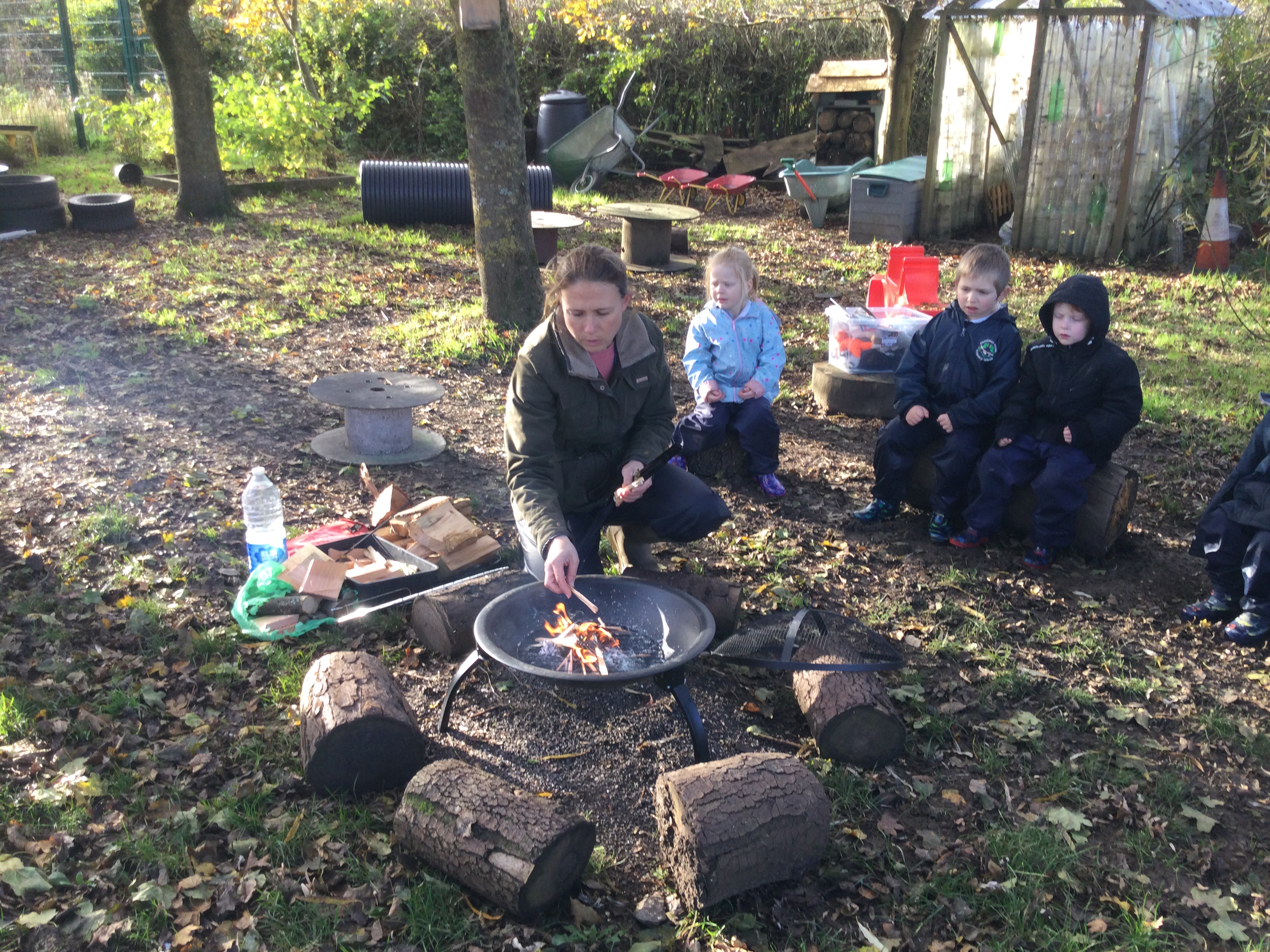 In Forest School, the children enjoyed learning about fire safety and enjoyed warm squash and a snack around the campfire. We shared the story of "Stickman" and talk about what was happening in the story as well as passing around our very own Stickman.