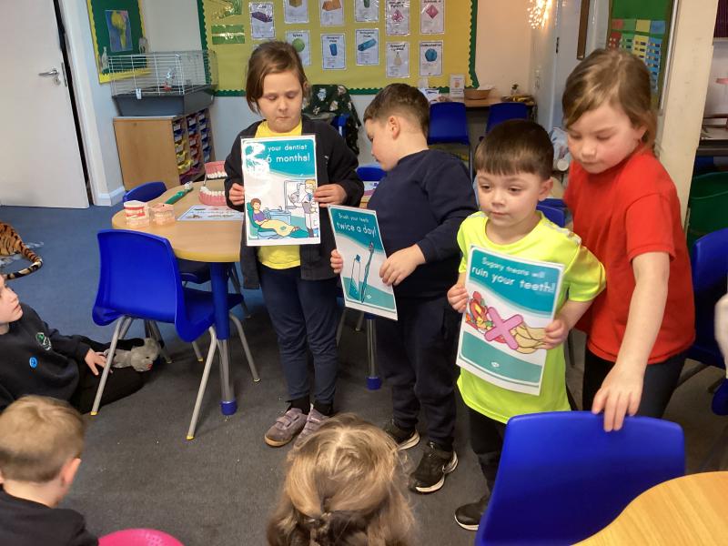 Mandy came in to talk to the children all about dental hygiene. She explained to them what she does, how to look after your teeth and why it is important to keep your teeth clean, she also explained which foods were good for your teeth and which were not. The children were able to say that they need to clean their teeth twice a day and for two minutes. Well done children! Mandy also demonstrated to the children how to brush their teeth, ensuring that they cover each one. They asked lots of great questions and listened well. Thank you so much Mandy for joining us today.